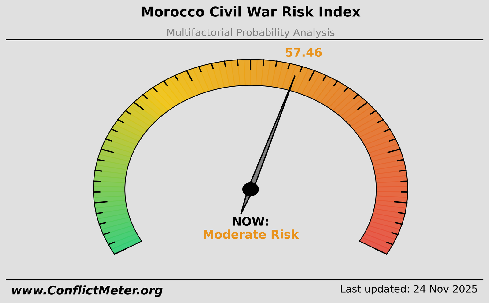 Morocco is currently ranked 3rd in the Civil War Risk Index and its risk category is moderate risk.