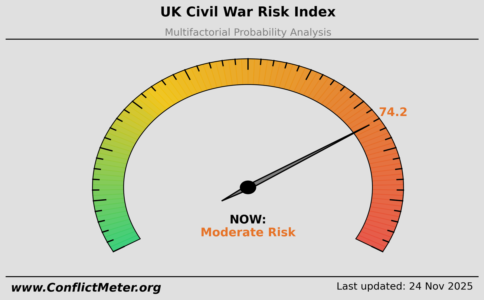 UK Civil War Risk Score & Political Unrest Forecast – 2025
